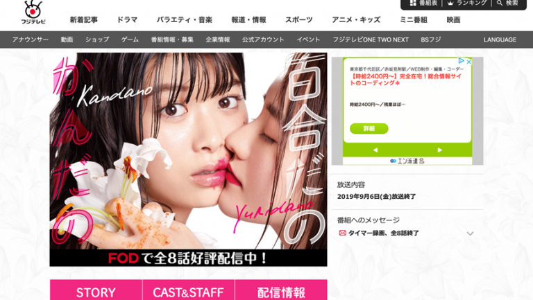 フジテレビ様FOD国内ドラマのLPページのコーディング作業を担当いたしました。